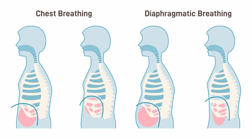 Most people are “chest breathers,” which is inefficient and triggers a stress response.